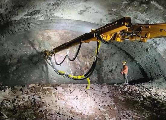 混凝土濕噴機械手是大型智能化濕噴機械,有效克服了傳統(tǒng)混凝土施工過程中所遇到的各種問題,大大提高了施工效率,保障了施工質(zhì)量。混凝土濕噴機械手在建筑、市政、鐵路公路隧道、基坑、礦山、邊坡等相關(guān)的噴射混凝土支護工程中廣泛應(yīng)用。