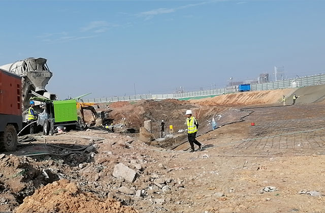 混凝土噴漿機(jī)是利用壓縮空氣或其它動力,將按一定比例配合的拌和料通過管道輸送并高速噴射到受噴面上凝結(jié)硬化,從而形成混凝土支護(hù)層。噴射混凝土技術(shù)工藝簡便,施工造價低,適應(yīng)面廣,在各種建筑領(lǐng)域內(nèi)發(fā)揮了重要作用。
