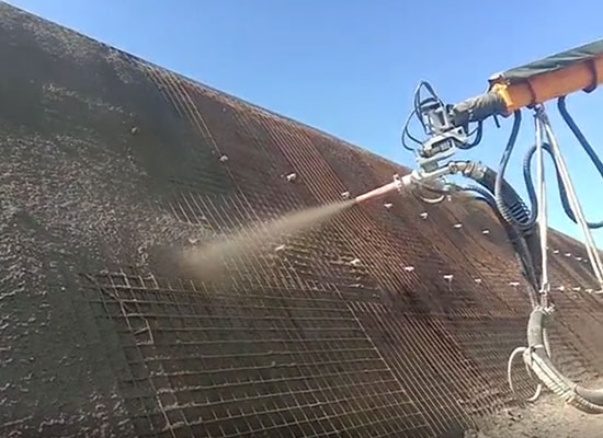 混凝土濕噴機械手是大型智能化混凝土濕噴設備,理論噴射排量每小時30立方?;炷翝駠姍C械手采用全自動無線遙控操作,智能控制添加液壓速凝劑,能靈活方便的完成各種作業(yè)面的混凝土噴射作業(yè)?;炷翝駠姍C械手廣泛應用于鐵路隧道、公路隧道、水利涵洞、礦山巷道、堤壩邊坡、建筑基坑和軍事工程等領域施工中的噴射混凝土支護作業(yè)。